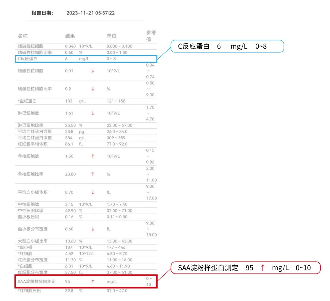 在常見的血液檢測指標(biāo)中,除常規(guī)的血常規(guī)、C反應(yīng)蛋白(CRP)檢測外,另一炎癥指標(biāo)——血清淀粉樣蛋白A(SAA)的檢測在該類疾病的診療中敏感性備受關(guān)注。